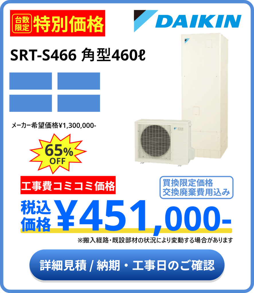 このフォームに入力するには、ブラウザーで JavaScript を有効にしてください。このフォームに入力するには、ブラウザーで JavaScript を有効にしてください。交換商品の選択お客様で選択お使えないエコキュートと同等タイプでお任せする現在お使いの品番例)三菱 SRT〇〇〇 等 (出来るだけ詳細ご記入ください) 型番の確認方法は上部ページからご確認ください。品番の確認方法 日立東芝三菱コロナダイキンパナソニック何名様でお使いでしょうか4名から6名3名から4名2名から3名1名から2名その他電気温水器・エコキュートのリモコンの数を教えてください台所と浴槽台所と浴槽とサブリモコン台所リモコンはないその他浴槽の設置場所を教えてくださいタンク設置1階 浴室も1階ダンク設置1階 浴室2階タンク設置1階 浴室3階以上その他名前 *ふりがな *住所 *郵便番号に続いてそのままご入力ください電話番号 *メールアドレス *備考欄ご不明点や注意点など、ございましたらこちらにご入力ください送信